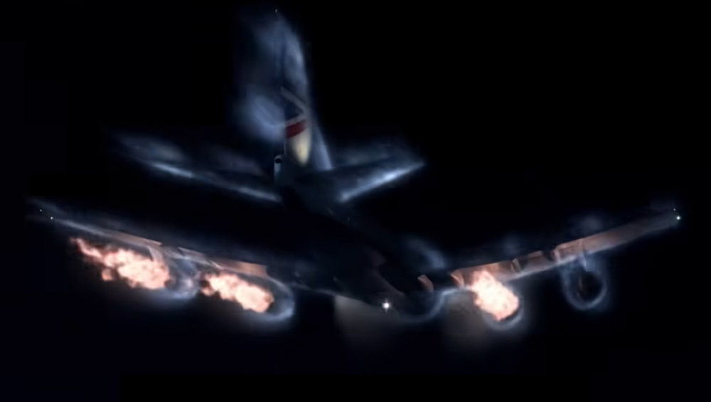 飛機彷彿是遭遇魔咒一般。當飛上15,000英尺的高空時,飛機內就開始瀰漫詭異的煙霧。接著,引擎熄火,機組人員無論如何也找不到問題所在。這種詭異的情況,機組也是第一次遇到。