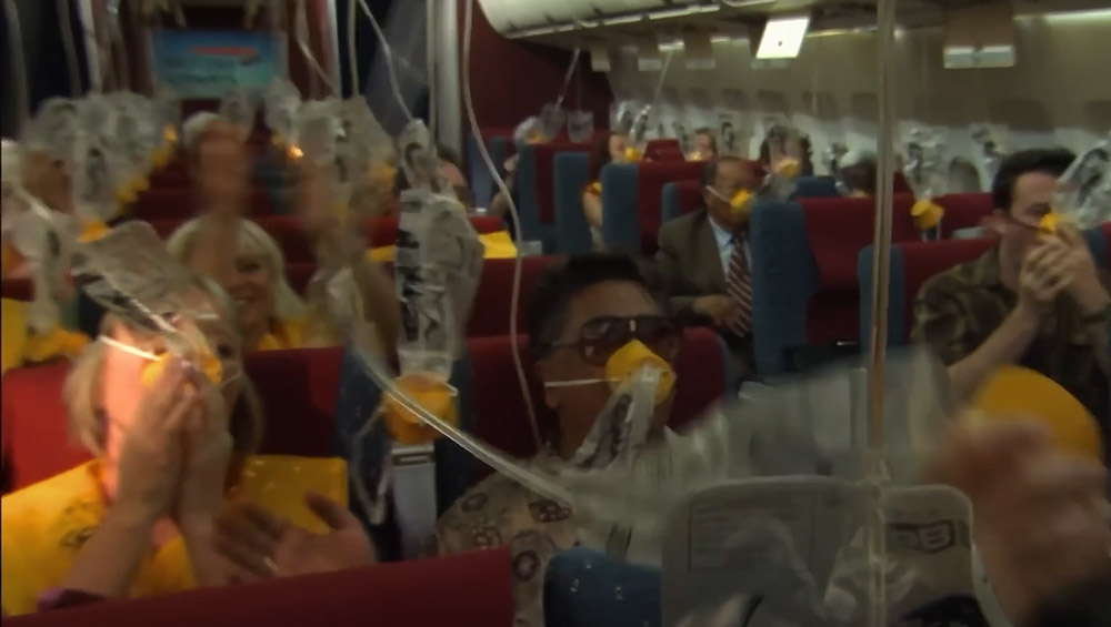 就在機組全力搶救飛機時,乘客們已經開始出現心慌、呼吸困難。這是因為引擎熄火後無法為機艙增壓,氧氣變得稀薄造成的。不過還好,很快客艙氧氣面罩落下了,乘客們的氧氣問題解決了。