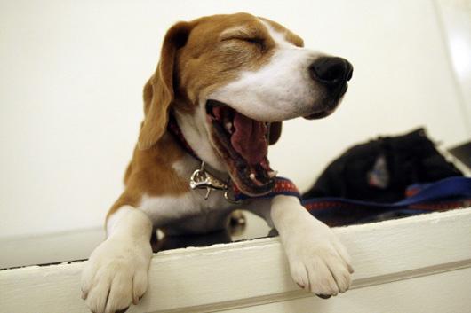 人類在覺得累或者有睏意的時候,往往會打哈欠。狗狗跟我們一樣,在這些情況下也會產生打哈欠的生理反應。如果你觀察到自己的狗狗連續打了好幾個哈欠,通常情況下這意味著他們處在絕對放鬆的狀態。但有時候狗狗連續打好幾個哈欠,也可能是感到緊張或焦慮,比如在寵物醫院,狗狗會通過打哈欠的方式來緩解壓力。