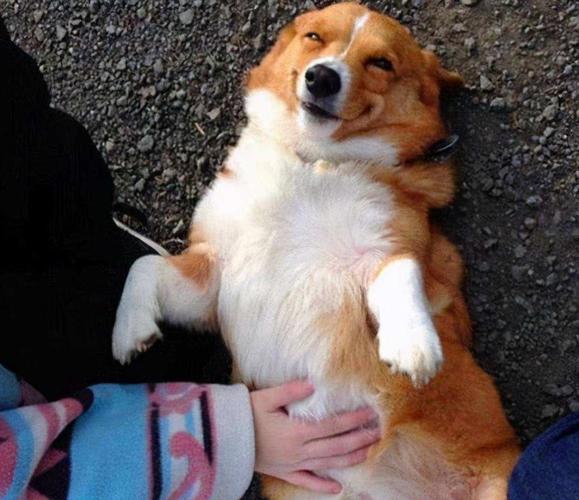 狗狗在和主人玩耍時,玩得開心時就會向主人露出肚子,眼睛半瞇著,尾巴不停的搖擺,這是它們開心的表現,同時也有討好的意思,比如向你要零食、尋求撫摸等情況,狗狗就會做出這種姿勢。這也表明了它們對主人的依賴和親近感。
