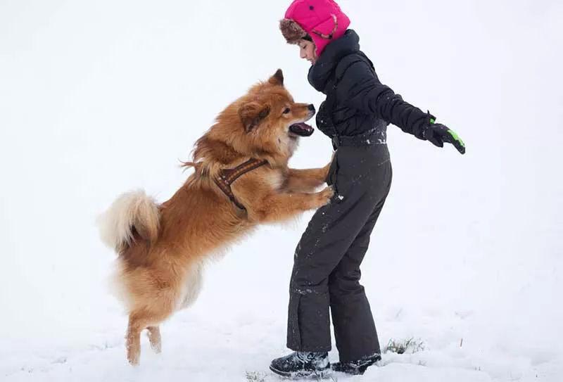 還有一種情況是狗狗表達開心。當主人回家或者狗狗遇到自己喜歡的人或同伴時,它經常會用後腿站立來迎接。這個時候的狗狗身體會不斷前傾,極其興奮,非常可愛。除此之外,狗狗在玩耍的時候也經常後腿站立。大部分情況下,狗狗後腿站立,都是表達喜悅、興奮。