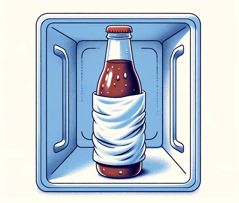 Got a warm drink and want it cold in a jiffy? Simply envelop your beverage with a damp paper towel and pop it into the freezer. Within roughly 15 minutes, you'll be greeted with a refreshingly chilled drink.