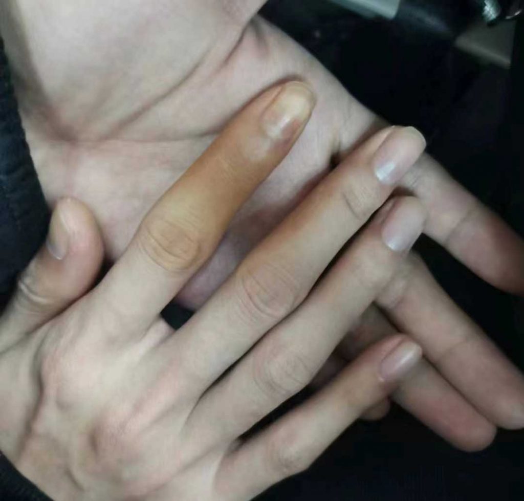 如果指甲變藍,最大的可能是衣物染色例如洗牛仔褲,還有可能是血液中氧氣不足的結果,跟缺氧時嘴唇青紫一個道理。